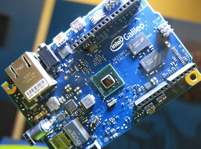 Πολυ ευχαριστα τα νεα που μας ερχονται απο την Intel. Ανακοινωσε επισημα ενα board που φερει τον μικροεπεξεργαστη Intel Quark Soc1000 και ειναι συμβατο με arduino. O συγκεκριμενος επεξεργαστης ειναι 32bit και βασιζεται στην αρχτεκτονικη Pentium. Tα pins που υπαρχουν ειναι digital 0-13 και analog 0-5 τα οποια βρισκονται στις ιδιες θεσεις με το arduino. Μαλιστα θα μπορουμε να χρησιμοποιησουμε shields 3.3v αλλα και 5v με την επιλογη να γινεται μεσω jumper. Για τον προγραμματισμο θα μπορουμε να χρησιμοποιησουμε το Arduino Software Development Environment (IDE). Επιπλεον να προσθεσω οτι υπαρχουν mini-PCI Express slot, 100Mb Ethernet port, Micro-SD slot, RS-232 serial port, USB Host port, USB Client port, και 8MByte NOR flash.